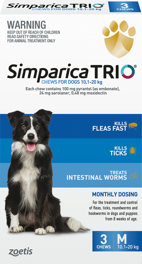Simparica Trio Chew 3 pack - Flea, Tick, and Worm Treatment
